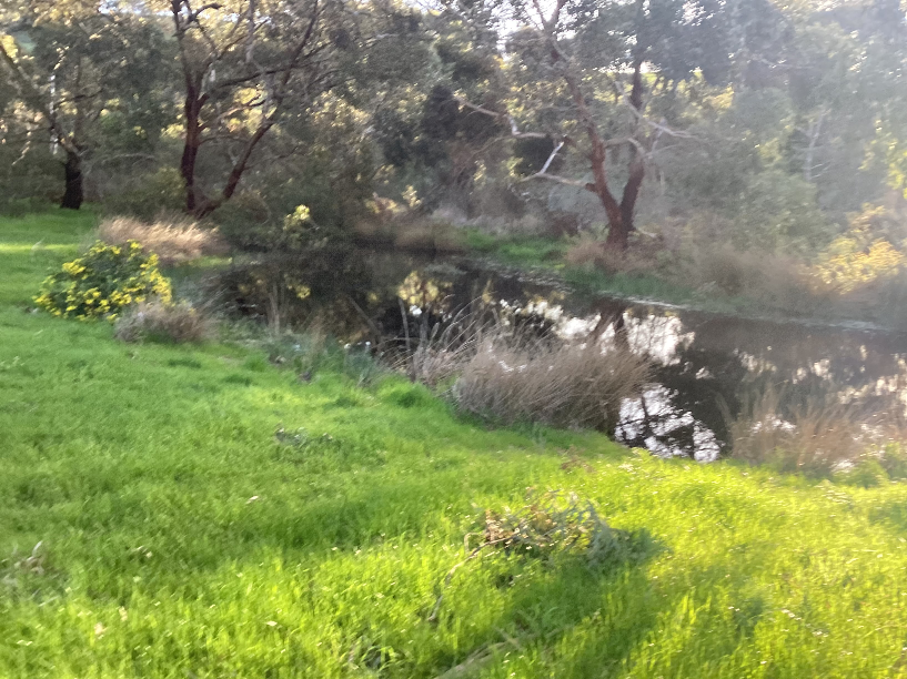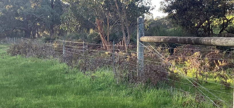 Paddock which is flat at the end of a dead end road. Usually quiet with little to no traffic. Fully fenced but not dog proof. There are cattle across the road.