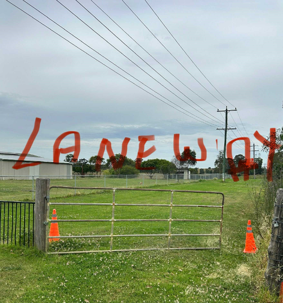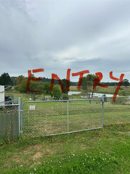 Entry is via the laneway at the witches hats, DO NOT drive up the laneway, park at the gate. The second gate with the BLUE LOCK is where to enter. Please lock gate when leaving.