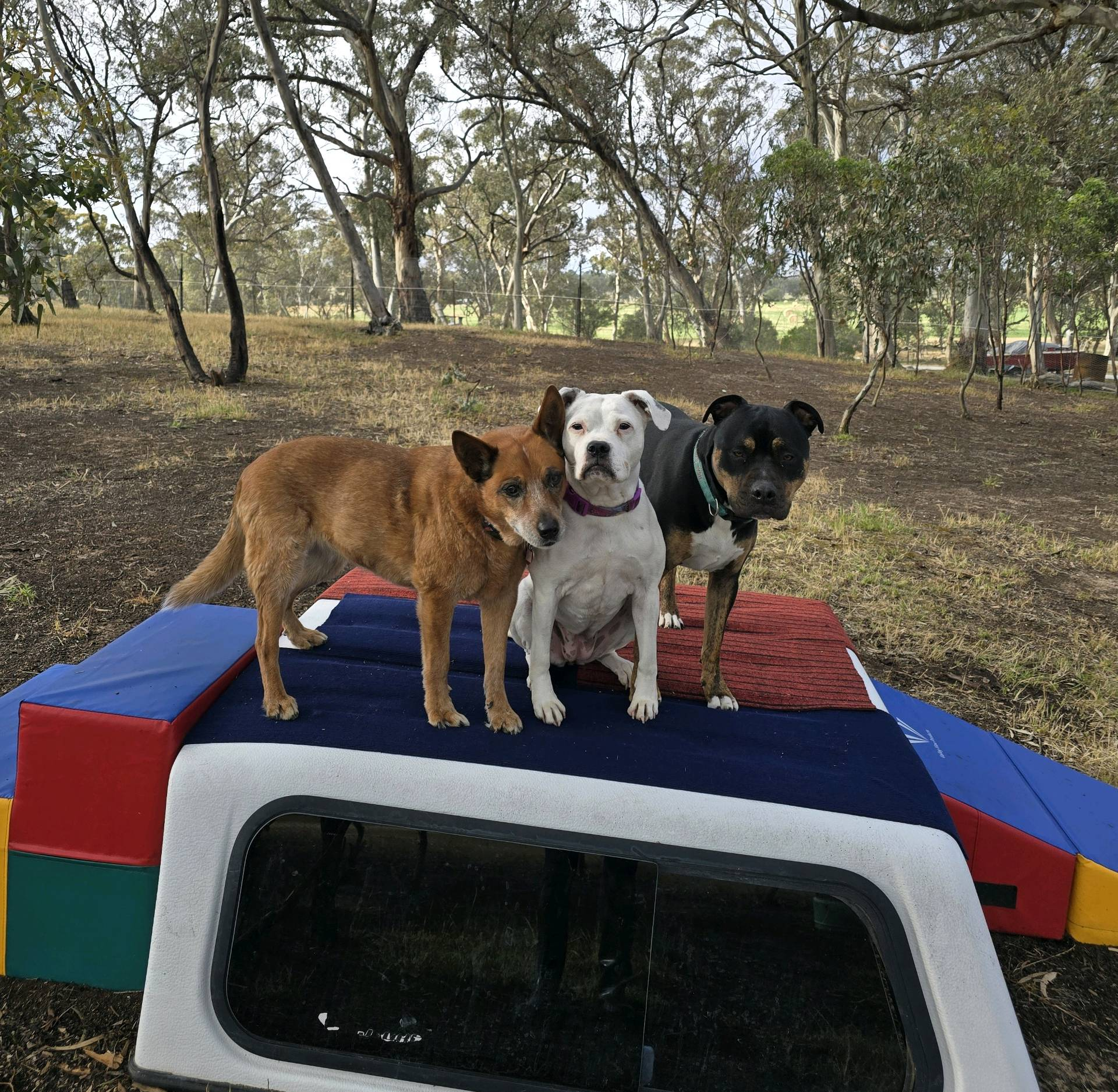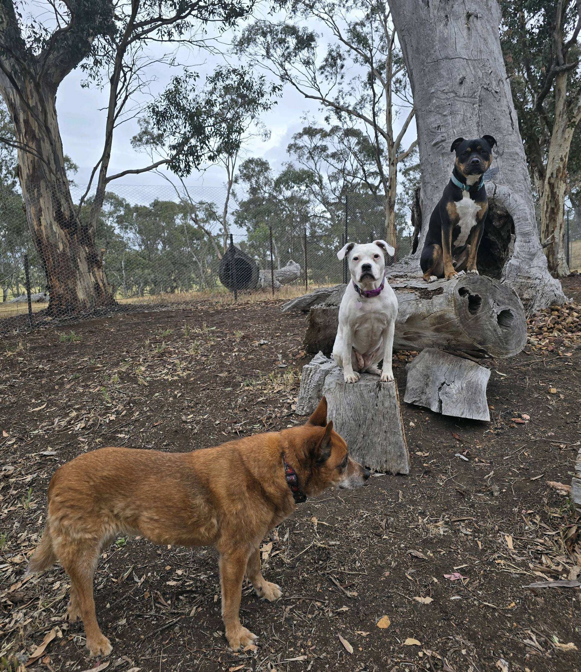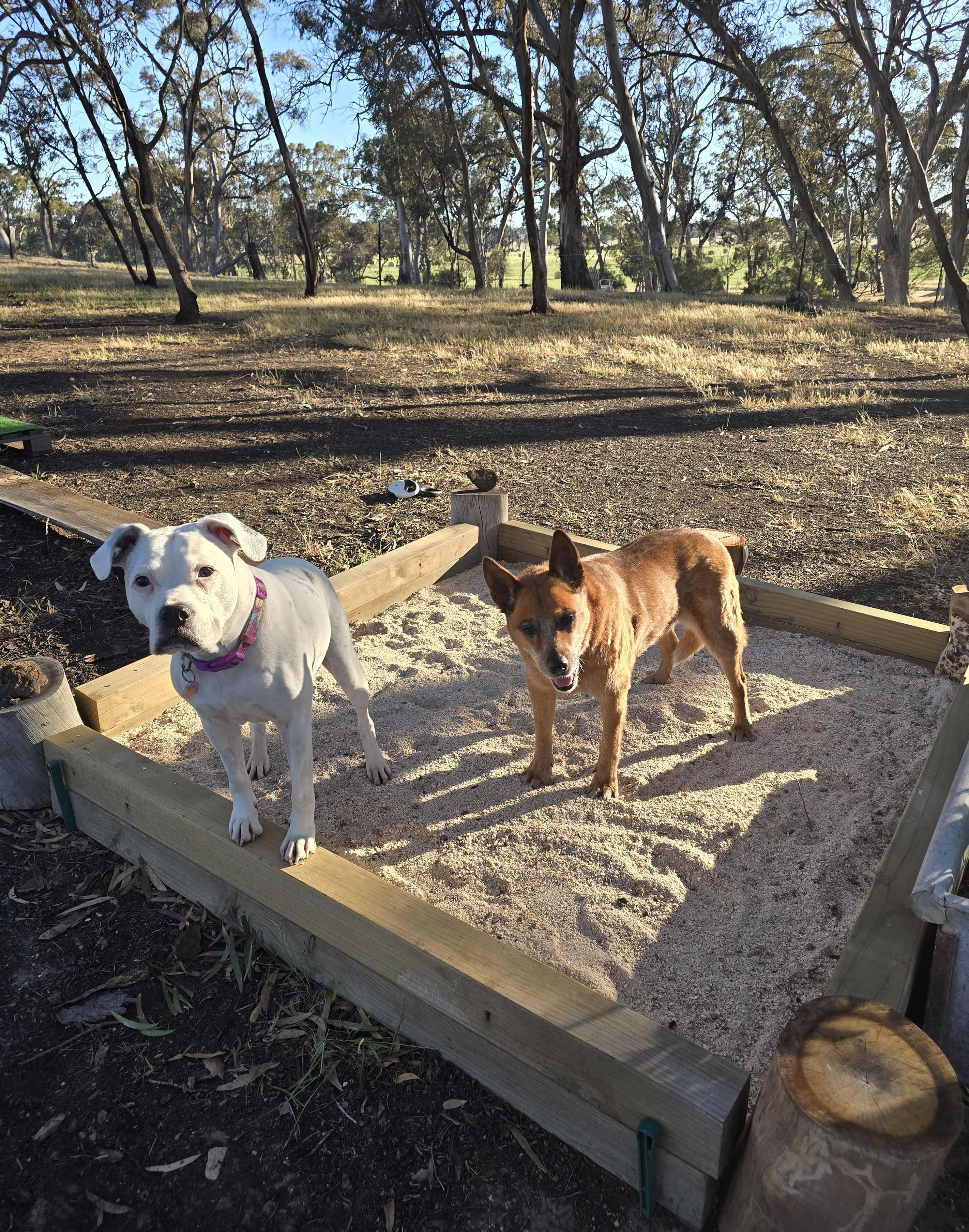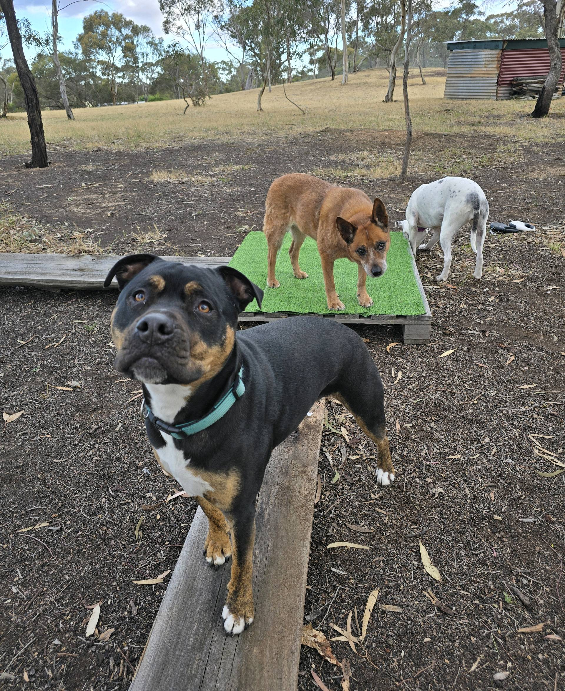 There is plenty of room for dogs to run and play. There are logs to climb on, plus other climbing activities, a sandpit and ball/toy pit. Timber has been laid out for low jumps/hurdles, plus there's a tunnel and weaving poles.