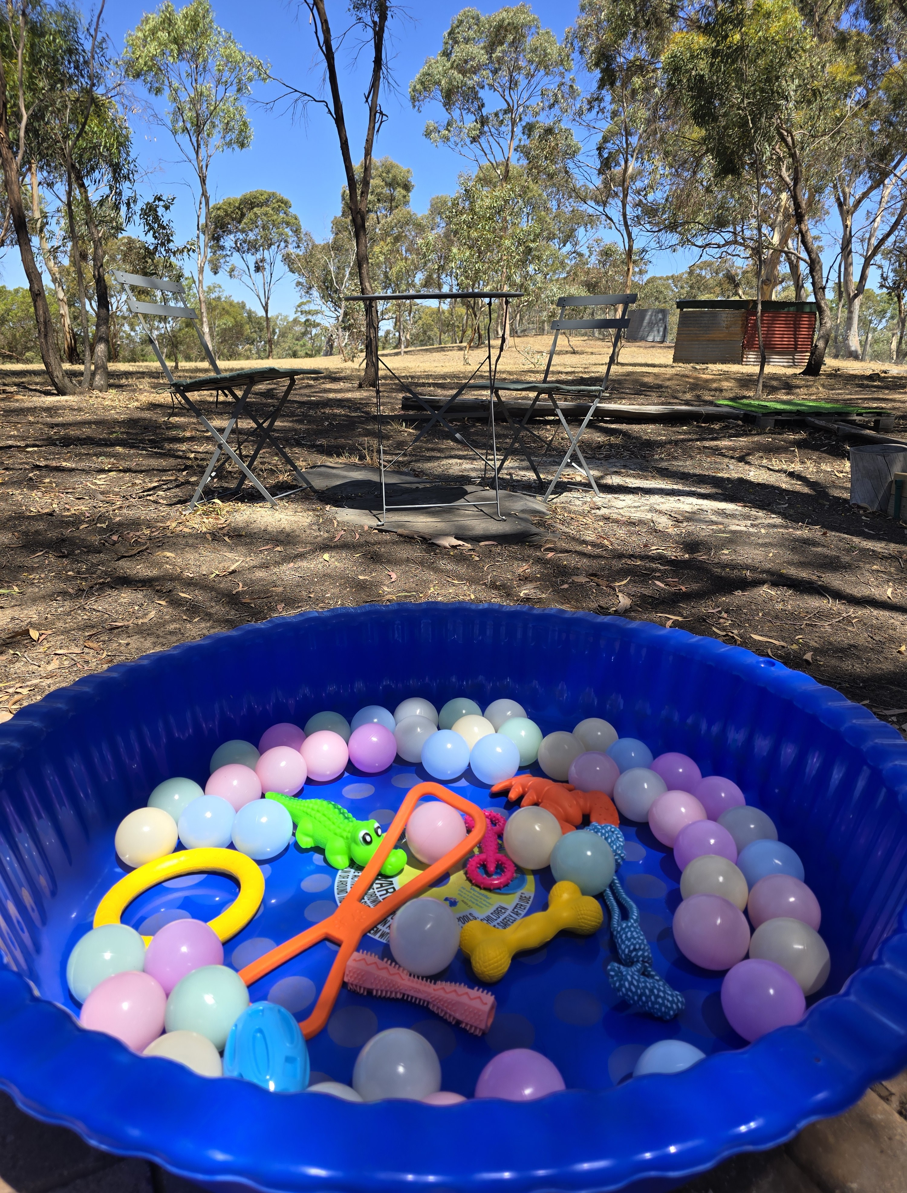 There is a bottle of white vinegar and water made up for use as a disinfectant in the shelter shed on the white shelves. Please spray dog and kids toys if used. Thanks